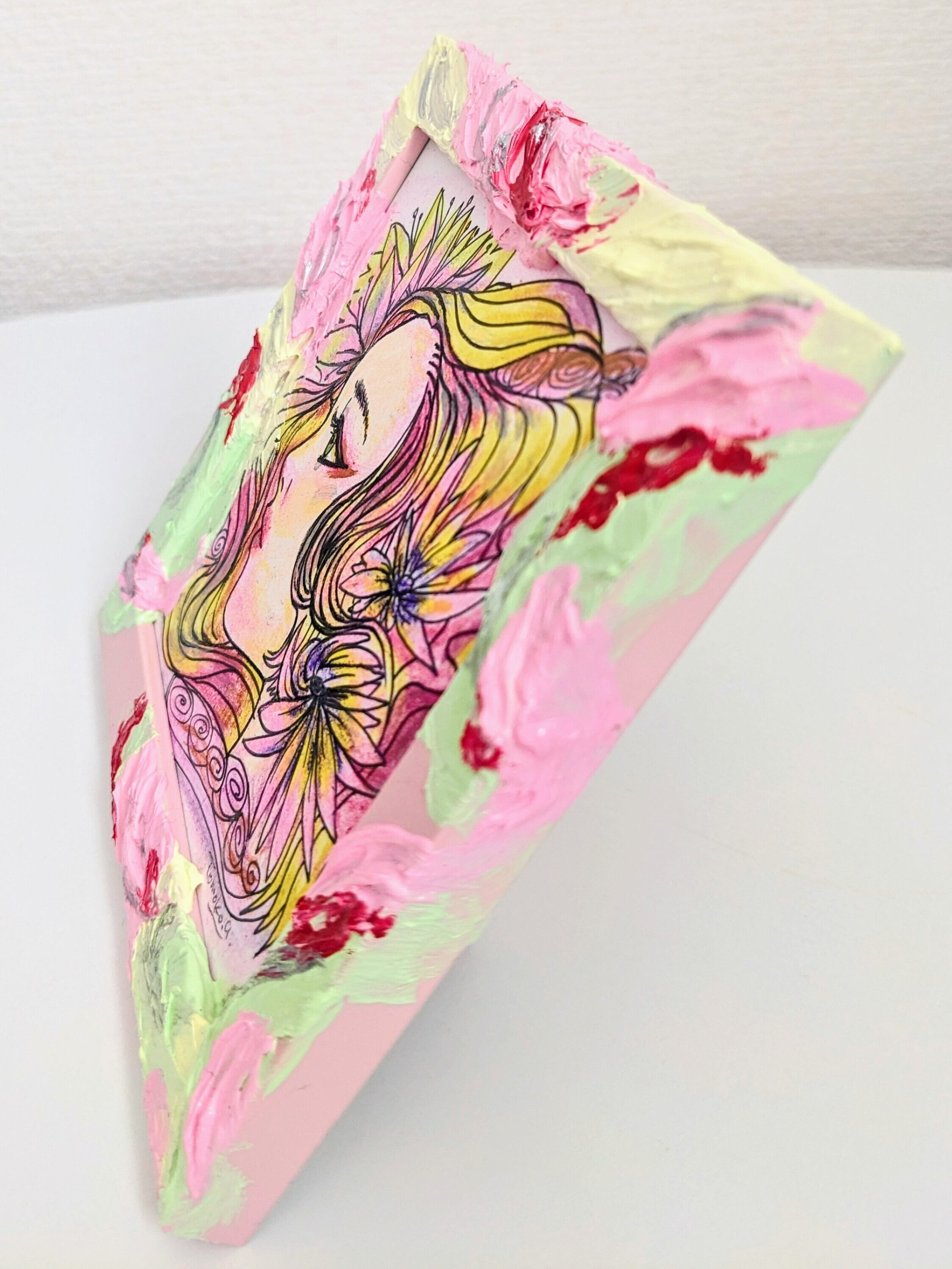 ミニ額、紙、アクリル絵の具、ペン、クレパス
